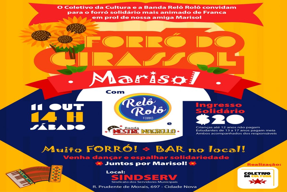 O Coletivo da Cultura e a banda Relô Rolô, considerada uma das mais animadas da região, se uniram para realizar um forró solidário em benefício da francana Marisol, que está em campanha para a aquisição de sua prótese.